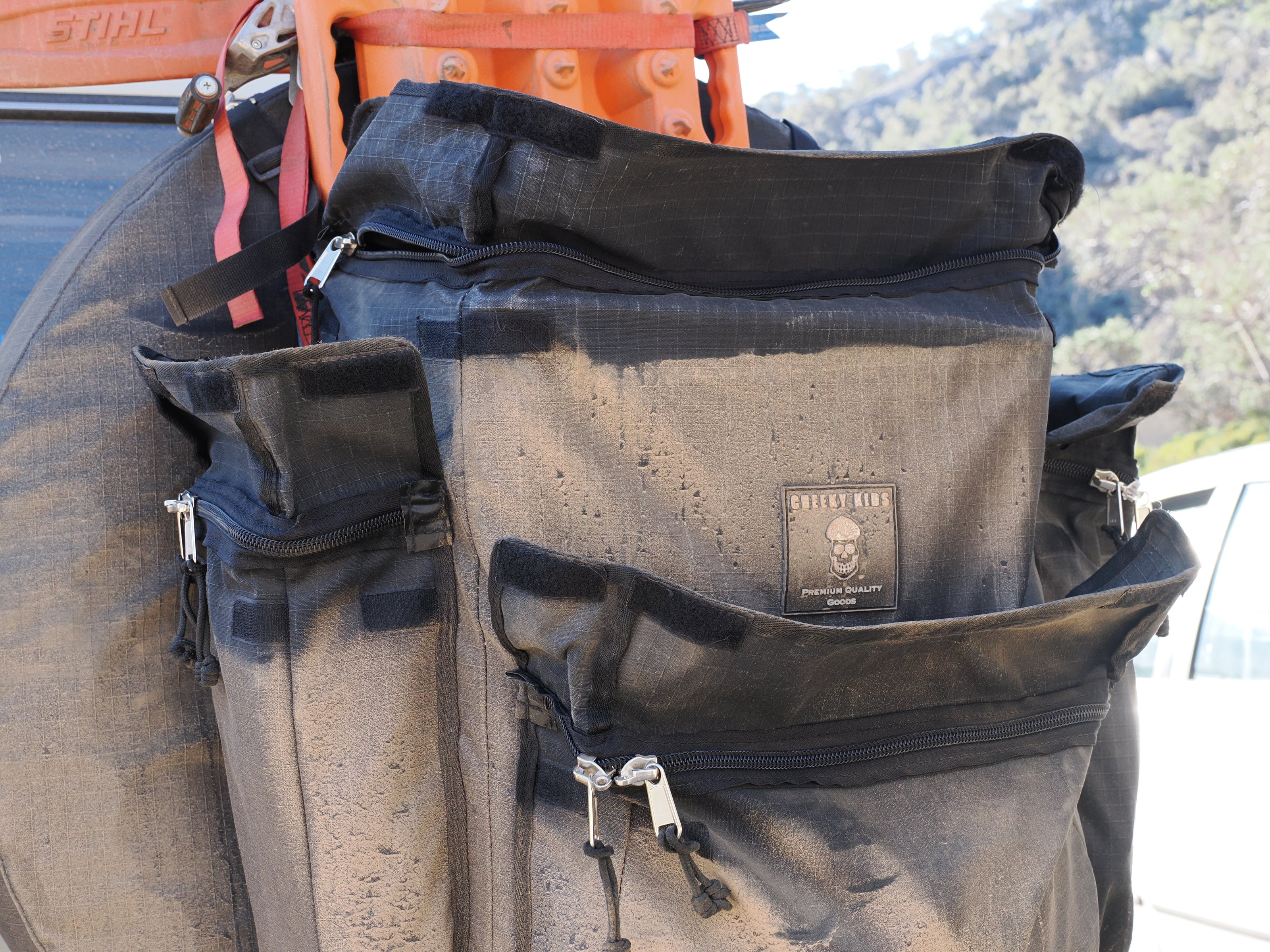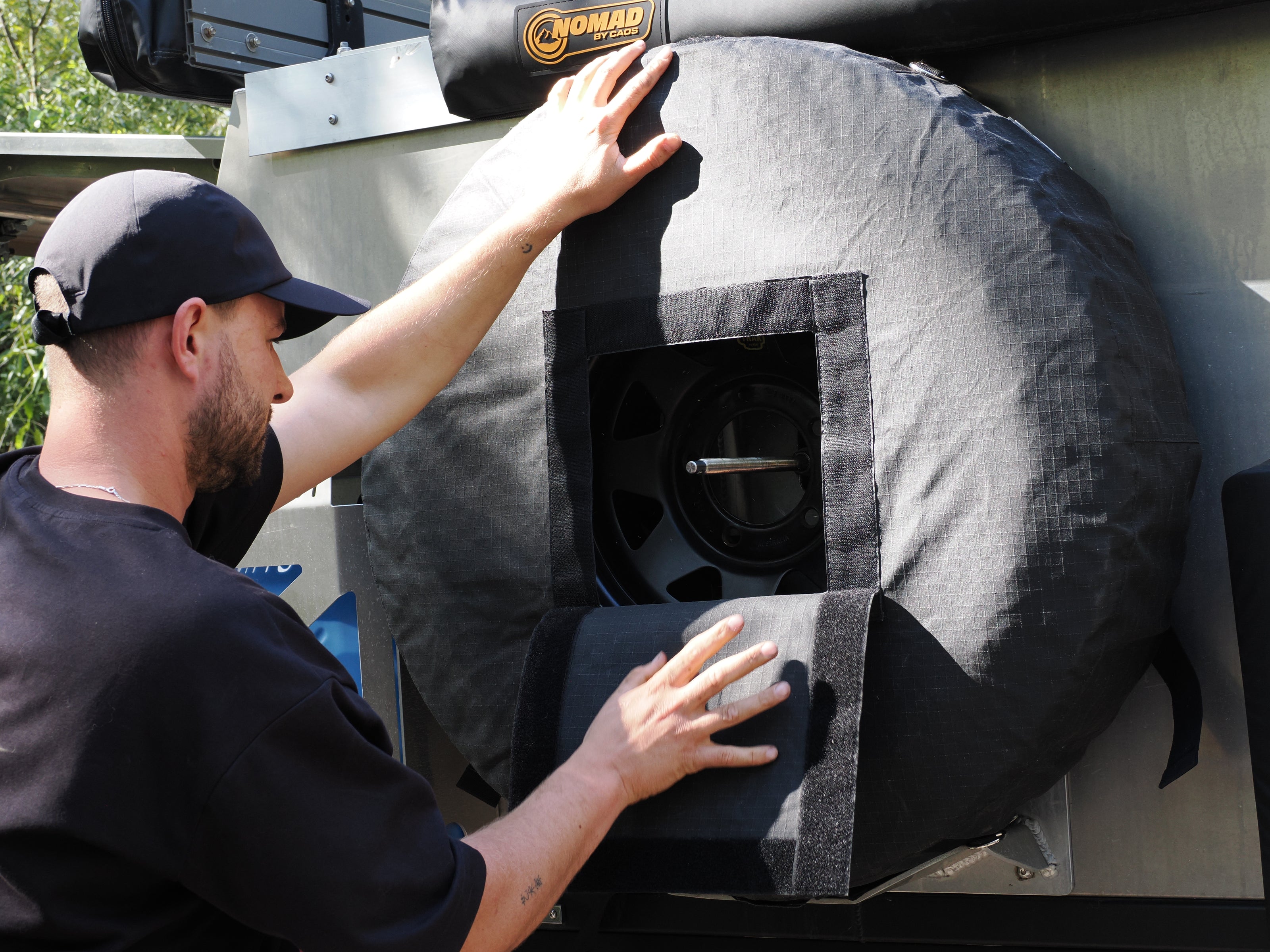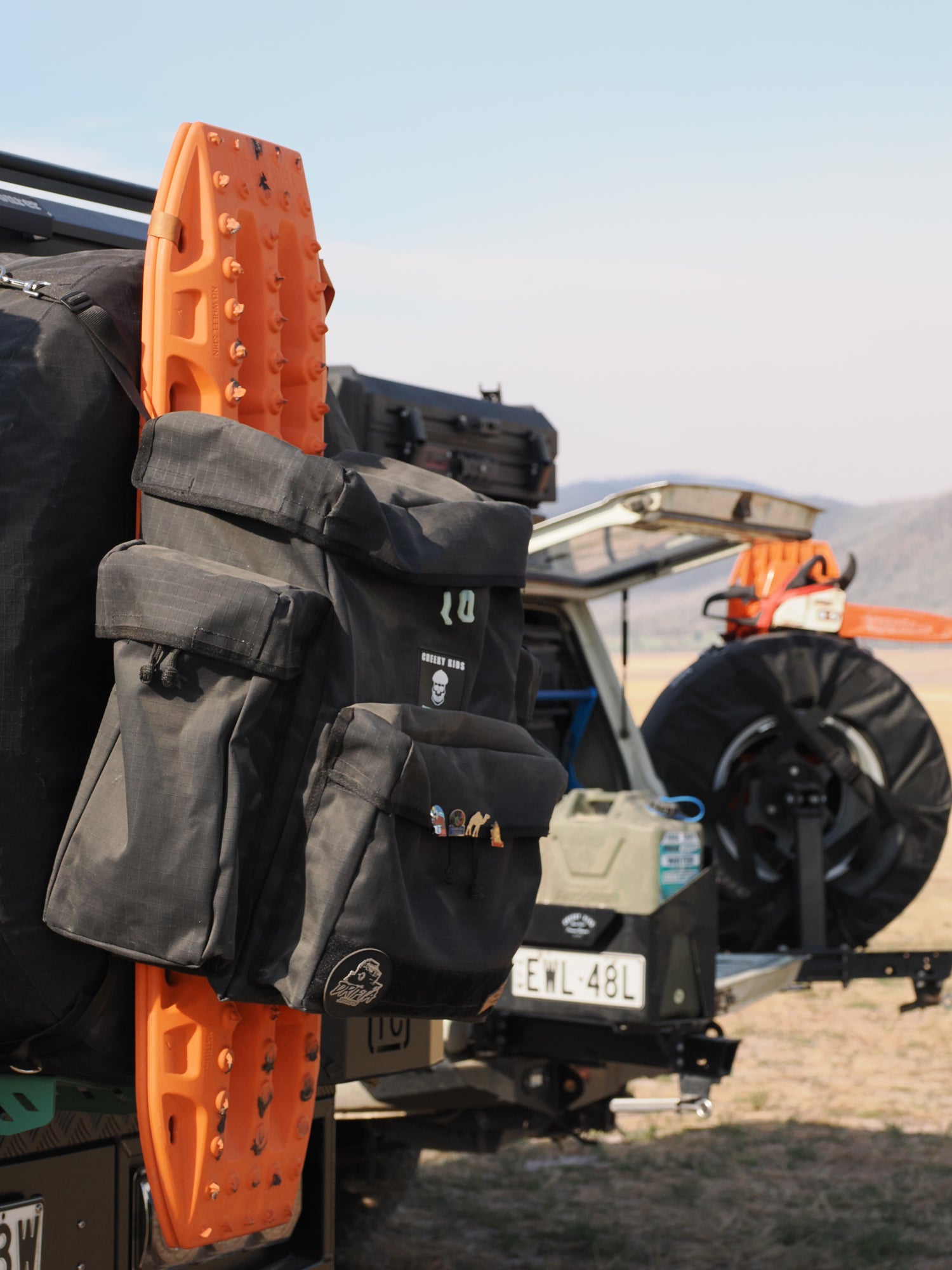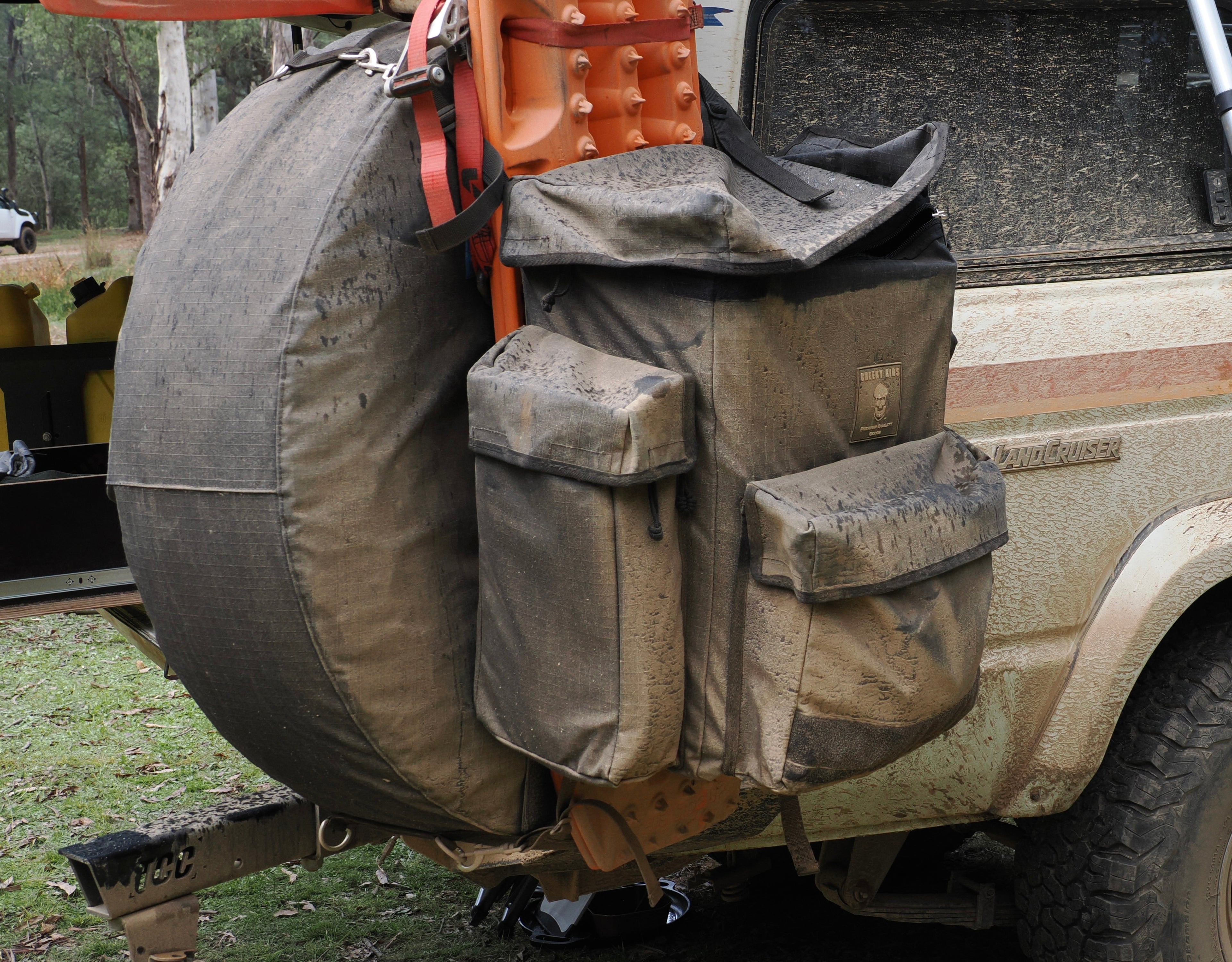 The Tyre Cover & Rear Rubbish Bag built for serious off-road travel.